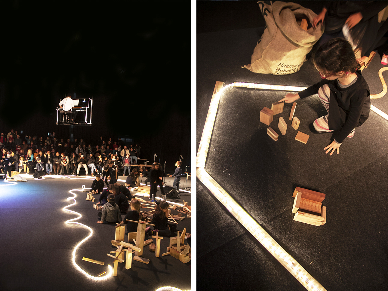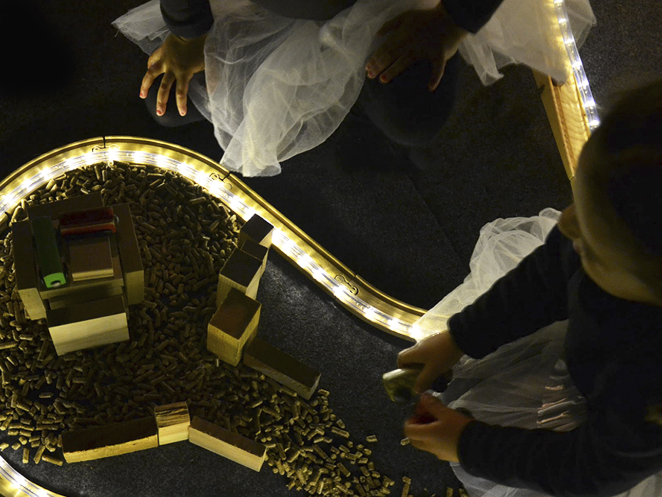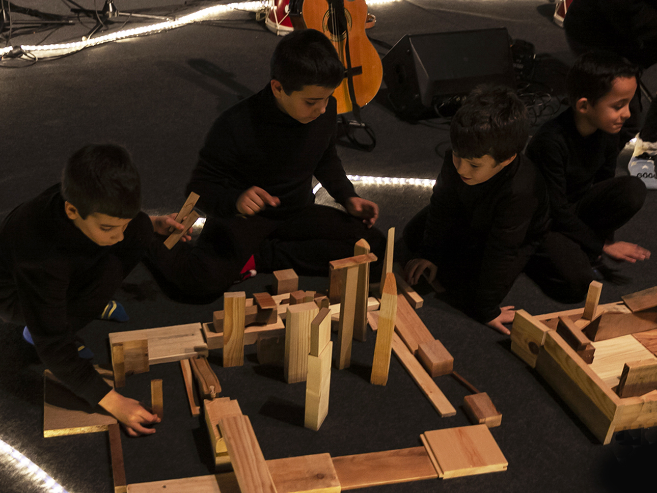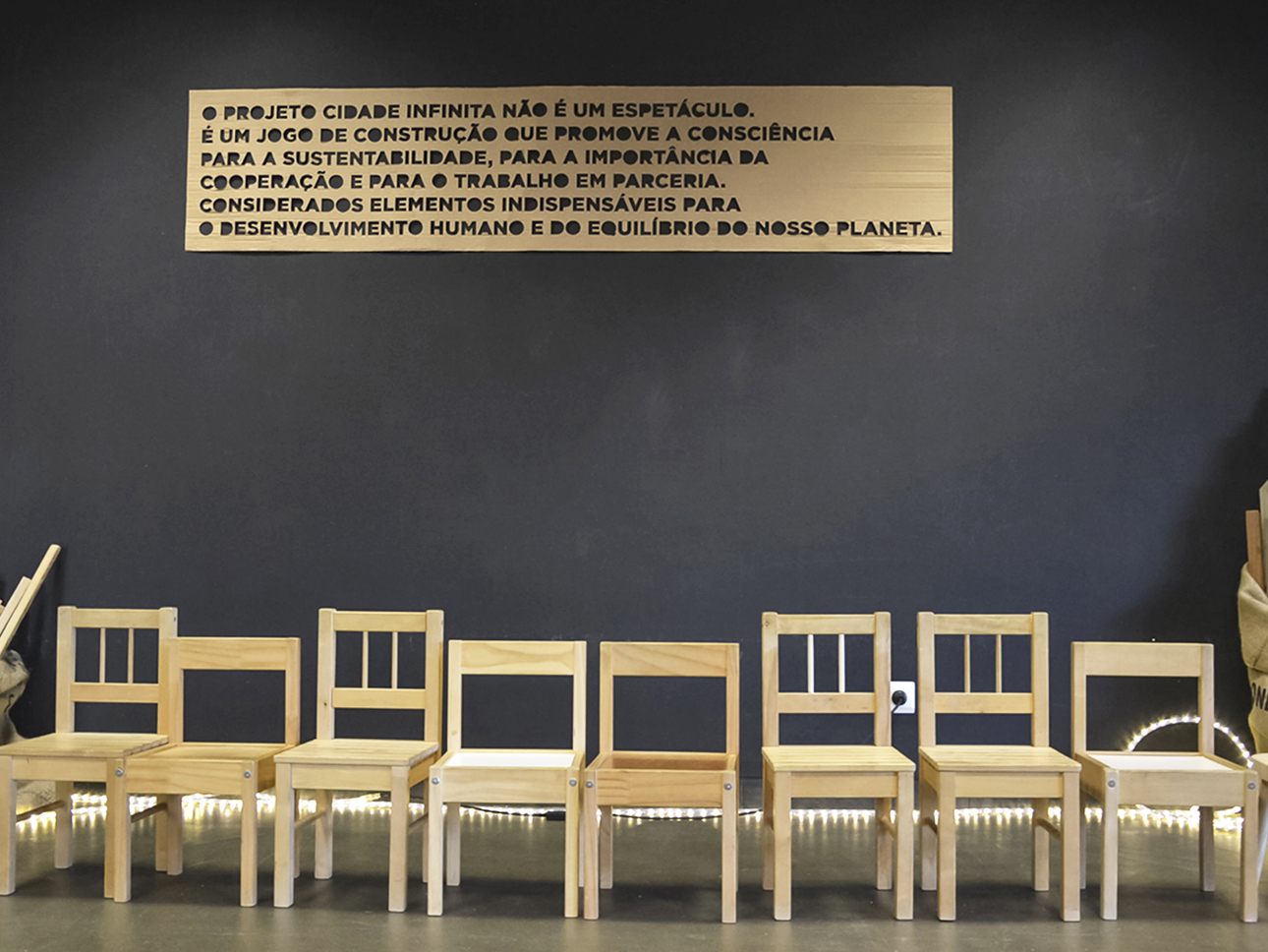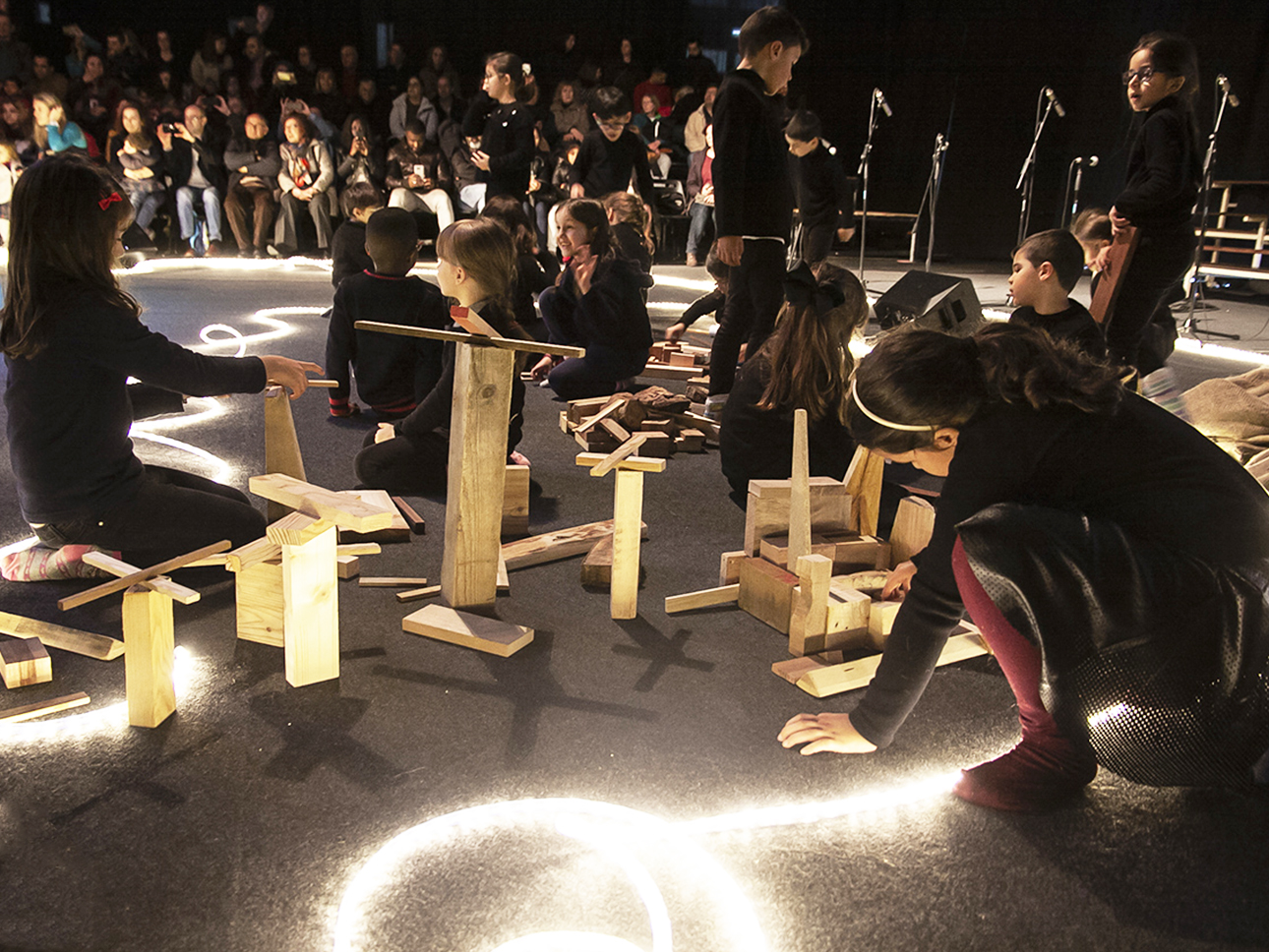 The Infinite City is a game performance that uses industrial waste to create and recreate urban spaces. objects of wood, in many shapes and sizes, are the "bricks" for building the City. With these pieces and the creativity of children, it is possible to design everything: houses or large public works and, above all, roads that connect and allow the meeting and exchange of ideas between participants, triggering a potentially infinite game. Using the universal languages of creativity and dexterity, each group of participants models its own infinite city, developing a unique and unrepeatable design. It is a participatory performance a collective work that is dynamically formed thanks to the cooperation between all. Interactions between participants give rise to moments of sharing and exchange of ideas.